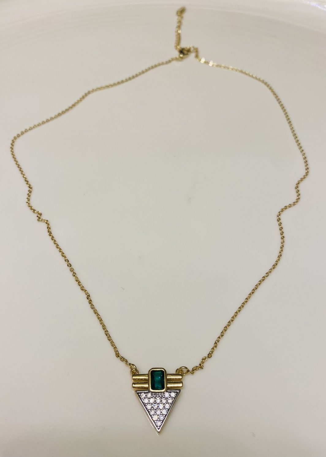 YEŞİL TAŞ ÜÇGEN KOLYE