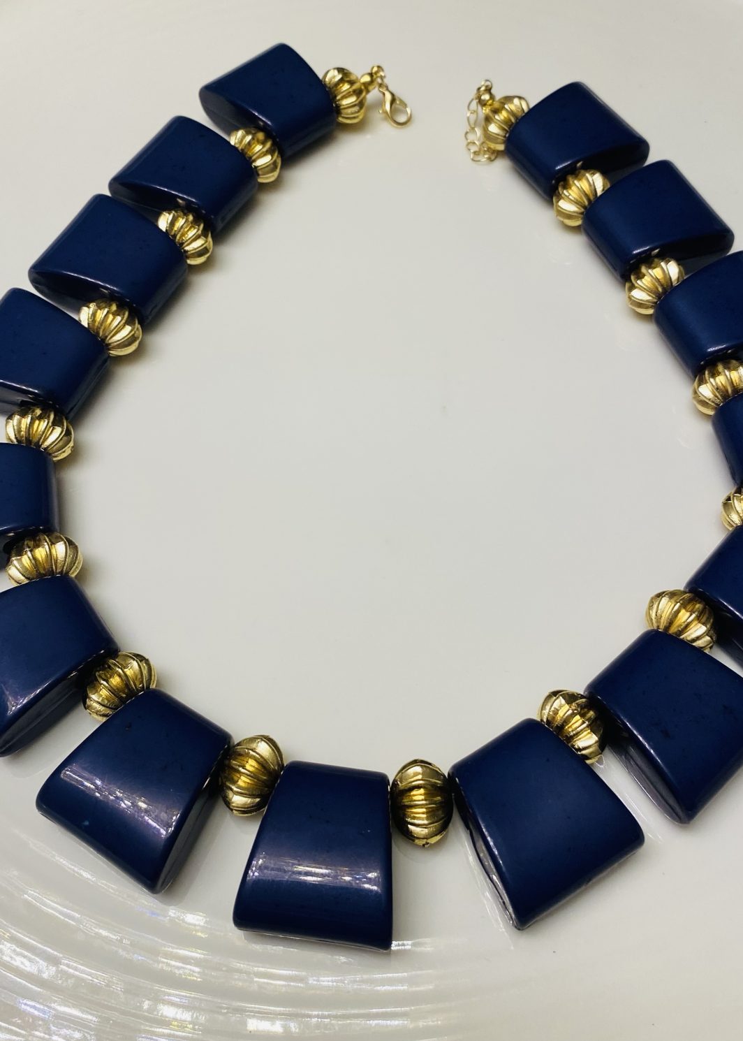 GOLD DETAY LACİVERT KOLYE